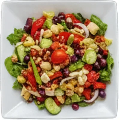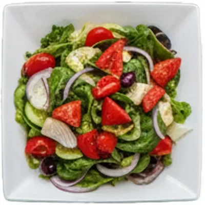 Feta ost, krutonger, rödlök, paprika, fefferoni, oregano, vinagrett, oliver